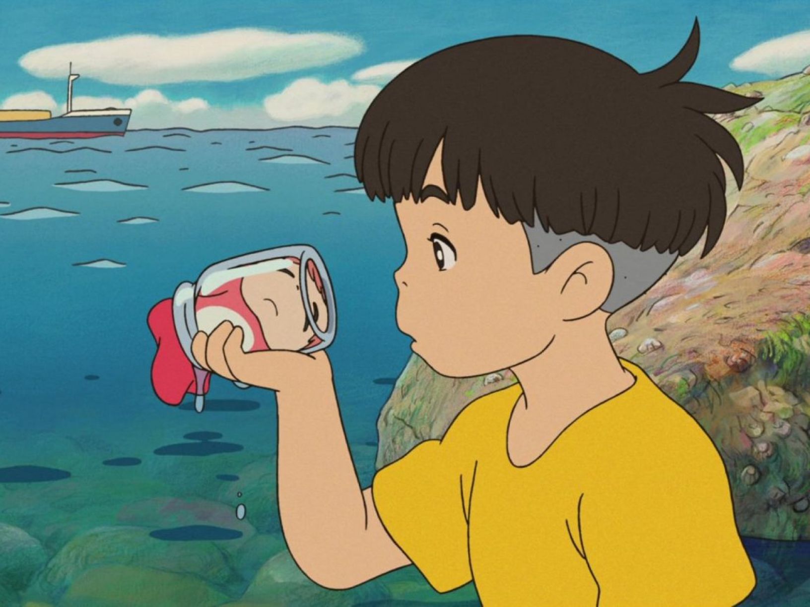 Velmistr světové animace Hajao Mijazaki přenáší příběh „Malé mořské víly“ do současnosti v gejzíru vizuálně podmanivé fantazie. Ponjo z útesu nad mořem představuje režisérův doposud nejsvobodomyslnější a nejhravější film. Setkání malého chlapce s rozvernou bytůstkou z vodní říše slouží jako rámec pro strhující dobrodružství nespoutaná racionalitou. Z proslulé přehlídky v Benátkách si snímek odnesl dvě ceny. (Aerofilms)