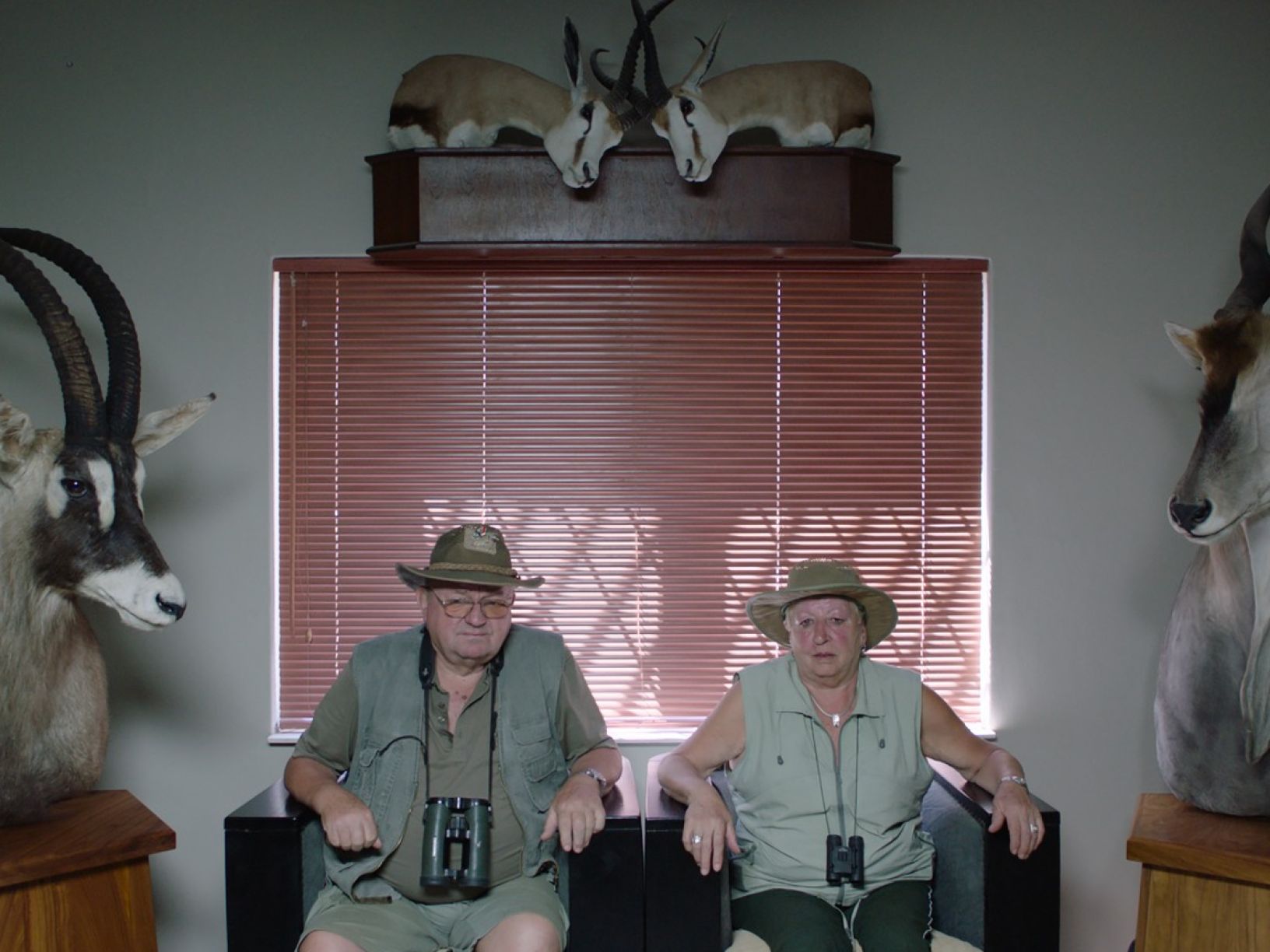 Další filmová esej od rakouského režiséra Ulricha Seidla navazuje na jeho předchozí snímek Ve sklepě, kde se podíval, jaké kostlivce schovávají počestní Evropané ve sklepech. Tentokrát svou techniku jakýchsi živých obrazů či zátiší zaměřil na safari průmysl, kam si podobní Evropané jezdí pro trofeje. Nemilosrdně sleduje toto odvětví turistického ruchu, kde si smutné parodie „velkých bílých lovců“ nejdříve vybírají z menu lovené zvěře jako v restauraci, a následně tito novodobí Hemingwayové a Rooseveltové vyrážejí na lov, kde potřebují na každém kroku pomoc od průvodce. Temně humorný film s nihilistickým viděním světa ukazuje, jak může být nepříjemná banalita.